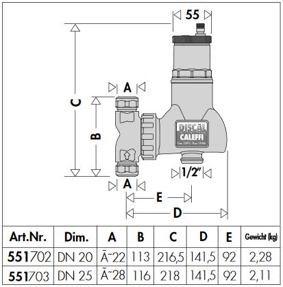 » Start » Caleffi » Entlüfter » Caleffi DISCAL Mikroblasenabscheider drehbarer Flansch waage- und senkrechter Einbau Ø28 551703- Hersteller: Caleffi